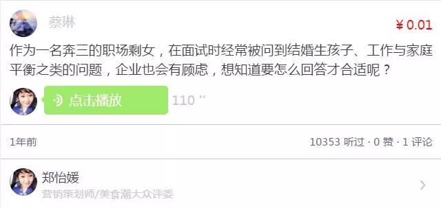郑怡媛(碰咖大咖):首先,我们站在企业的角度来考虑这个问题,想一想,作为一名老板,他更希望听到什么样答案?“你好,面试官,作为企业未来的一名员工,我的计划的在三年内将重点放在我的工作上,认认真真将手头上的工作负责好,给上司一个满意的答复。如果三年后我结婚生孩子了,我相信未来的老公和家人是会支持我工作的,所以在工作和家人平衡的问题上,我会选择更多的跟家里人沟通,保证我随时都能待命,谢谢。”
